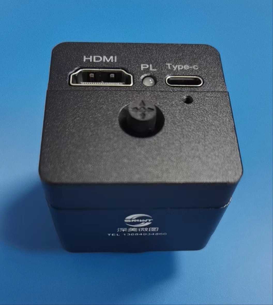 工业镜头安装在相机的 C 接口,HDMI接口与显示器输入接口相连接;Type C线连接相机,USB口连接5V电源适配器或者连接电脑USB,通上电后指示灯为由红色转为绿色,说明相机已经正常工作.