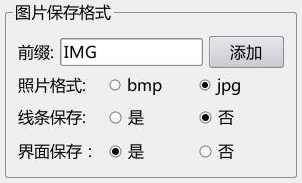 该界面可以修改存储图片的名称,及选择图片存储格式,同时可以选择存储照片时是否保留图像中的线条信息及软件UI界面。