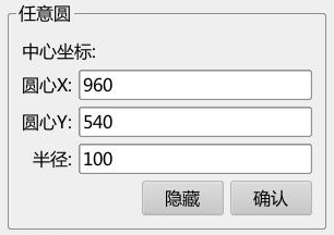 用户可以通过此界面设置圆的精确的中心点坐标,圆心参数及半径参数都是以像素点为单位计数。