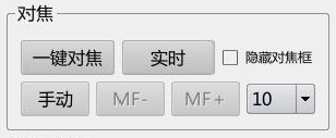 对焦控制可以分为三种模式:一键对焦模式只触发单次对焦功能,实时对焦模式可以在图像实时状态下始终处于焦段调整状态,手动对焦模式可以通过修改镜头对焦电机的运行方向修正对焦参数,右边的数值为单次触发手动模式后,对焦电机执行的步数。
