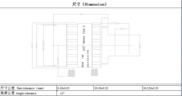 当前位置:网站首页 » 产品展示 » 工业镜头 » 16mm1200万像素工业镜头